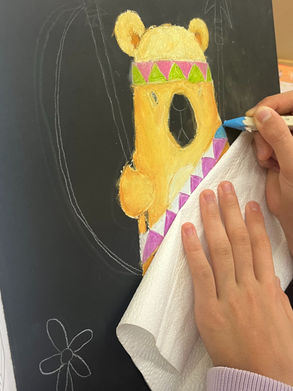 急いで帰宅し、黒板にオイルパステルで原画を一気に描き上げました。